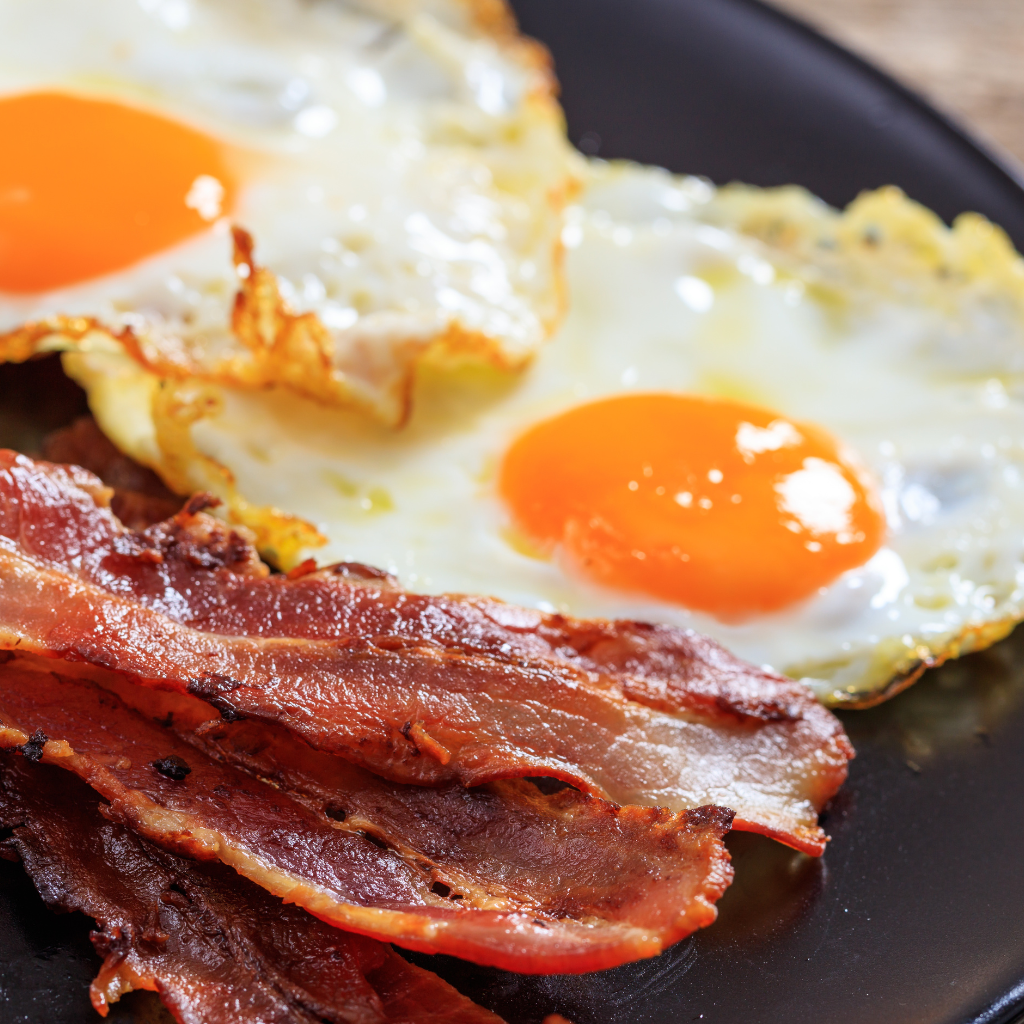 3 jaja, pečeni hamburger, tost. kruh