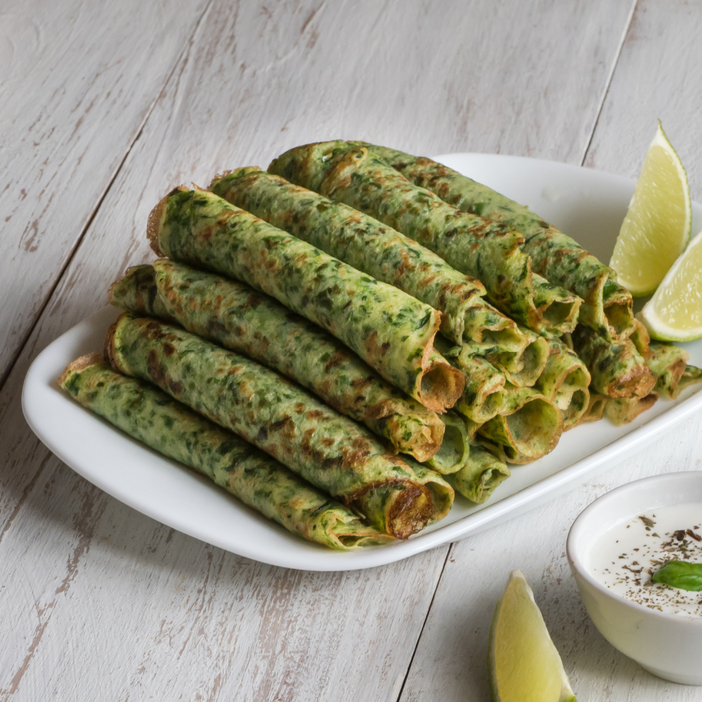 palačinke, špinat, grill povrće, sir, umak