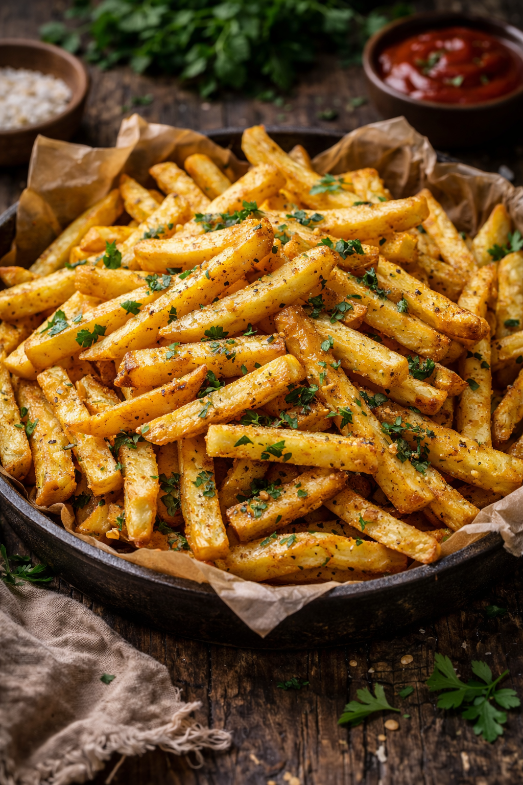 tikvica, paprika, gljive, crveni luk, pomfrit od batata