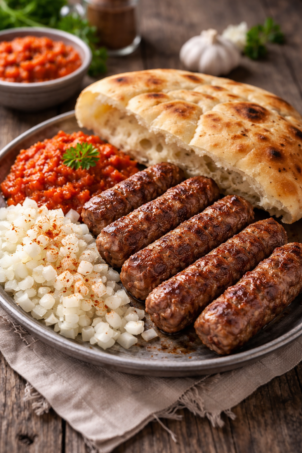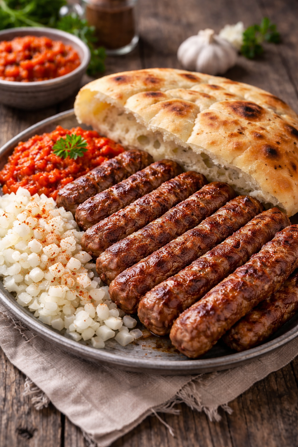 10 ćevapa, ajvar, luk, lepinja
