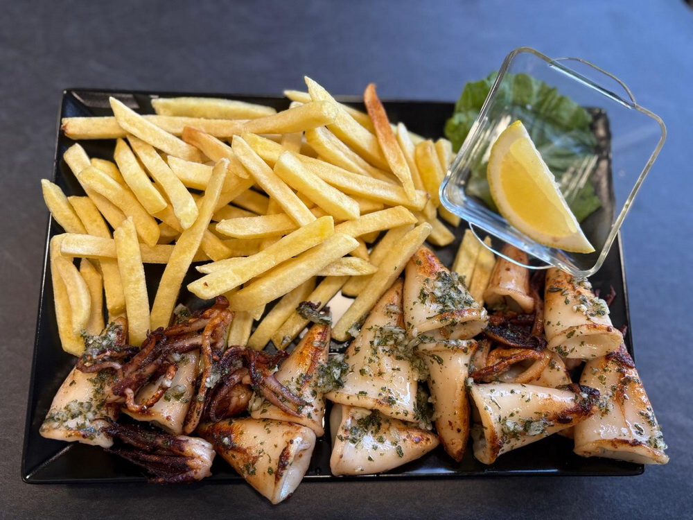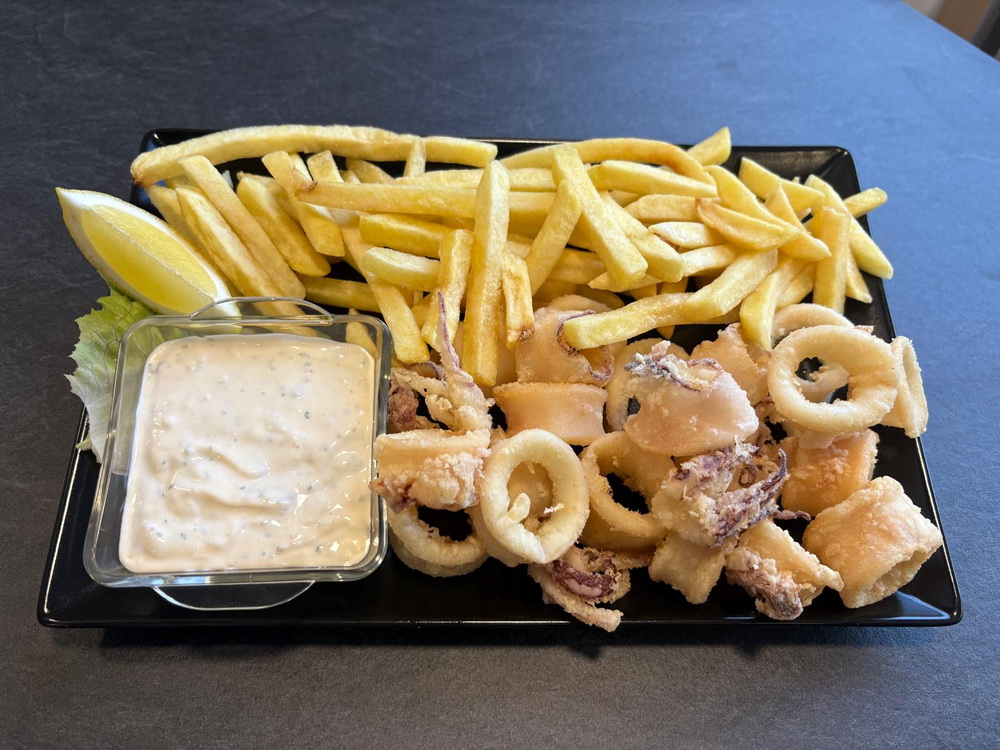 lignje, pomfrit, umak